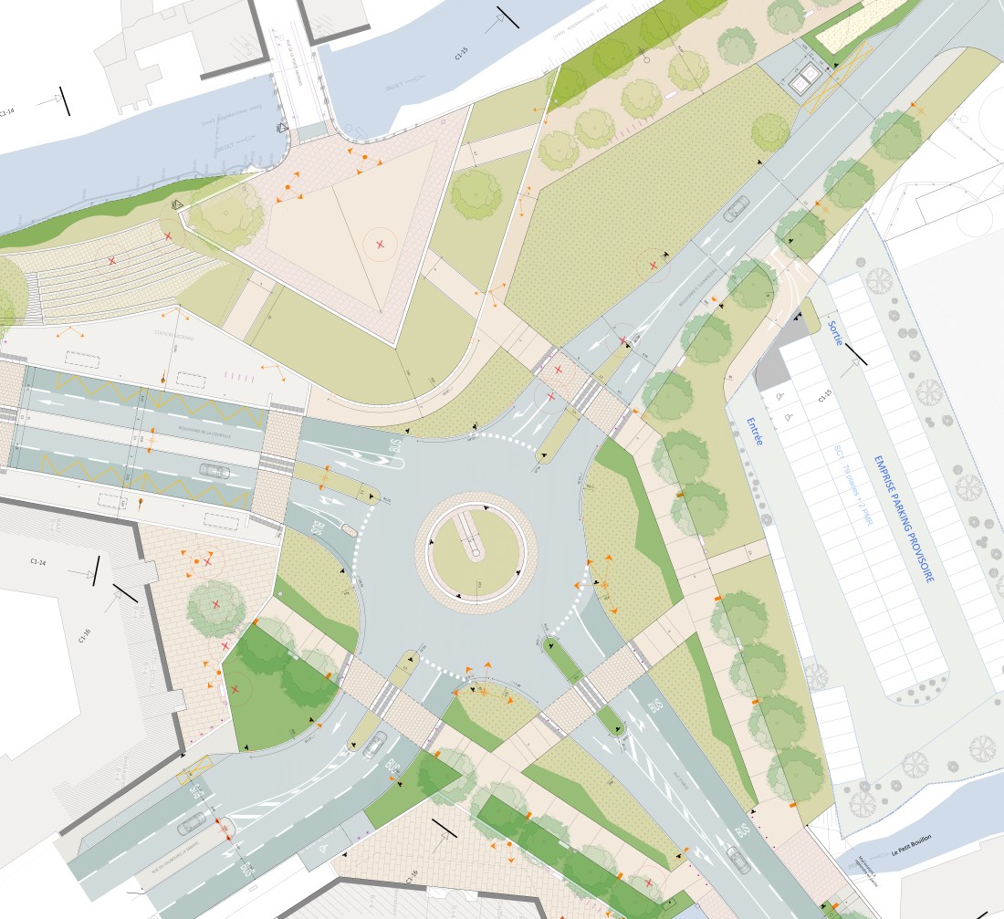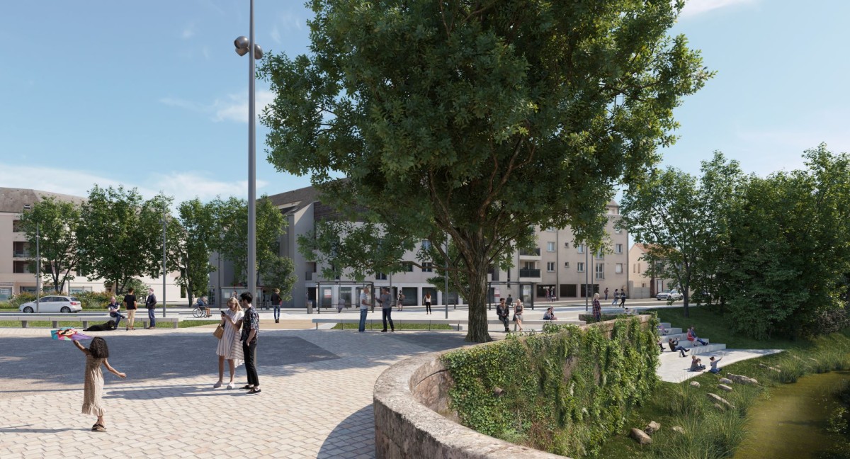 Sur la place Morard, il s’agissait de transformer l’actuel carrefour automobile en une «place urbaine», en s’appuyant sur l’histoire du lieu (ancien ouvrage bastionné) et le cadre paysager du site. L’aménagement propose une grande composition urbaine, guidée par son histoire, la présence de l’Eure et ses espaces paysagers, où la place de la voiture est réduite pour permettre une appropriation du lieu et de nouveaux usages : un nouveau lieu à vivre. Il sera le catalyseur d’un nouveau dynamisme de cette entrée de la ville basse et offrira, depuis la rue d’Ablis, une nouvelle image de Chartres.
