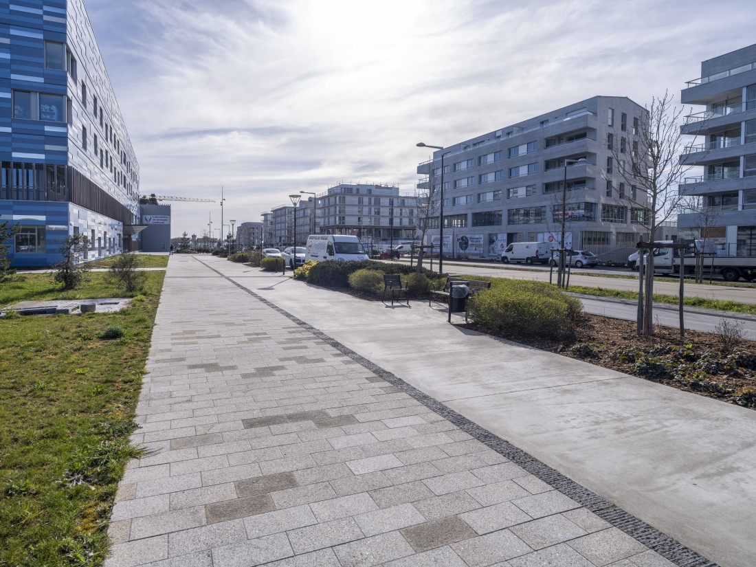 Ce nouveau boulevard paysager s’inscrit dans un réseau structurant d’espaces libres naturels connectés au grand territoire et de cheminements pour les piétons et les vélos. La préservation des franges végétales et arborées sur l’espace public et leur infiltration au cœur des îlots privés, a contribué à l’acceptation du projet et de sa densité (R+5) par les riverains au cours d’un processus de concertation publique établi à la fois à l’échelle globale ainsi qu’à celle de chaque îlot.