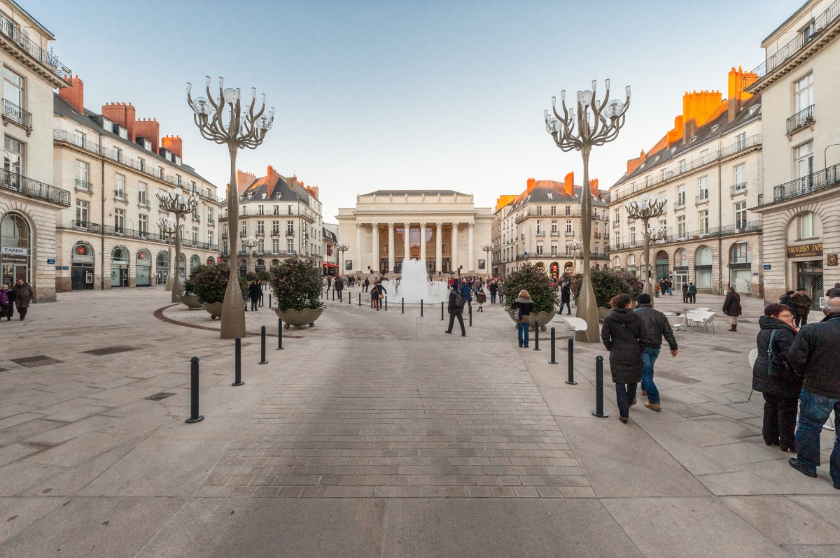 Le réaménagement de la place s’inspire des principes initiaux établis par l’architecte Crucy lors de la création de la place en 1787 tout en assurant les fonctionnalités pour les usages contemporains de terrasses commerciales, de circulation limitée des bus et des voitures,… Cette place devient ainsi un vaste plateau piétonnier bordé de terrasses mettant en valeur le théâtre Graslin et la composition urbaine. Le processus de conception de la place a fait l’objet d’une concertation publique et de réunions avec les comités de quartier. Différents scénarios ont été proposés avant de retenir celui qui a été finalement réalisé.