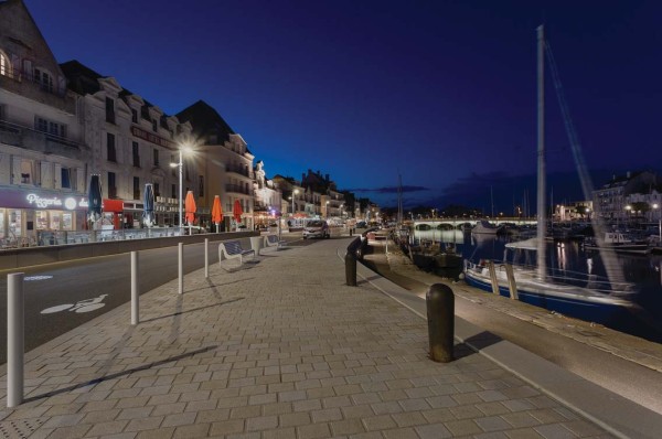 Le parti d’aménagement consiste à préserver le caractère portuaire du quai Jules Sandeau en s’inspirant de la simplicité des aménagements qui existaient au début du XXe siècle. Ceux-ci offraient une lecture claire d’un grand plan incliné vers le perré en granite accompagnant la courbe de l’étier. Les aménagements imaginés aujourd’hui tendent à concevoir un espace apaisé, dévolu principalement à la déambulation, permettant une activité portuaire (pêche ou plaisance) et confortable où l’on pourra, suivant la saison et l’heure de la journée profiter, debout ou assis, de la vue sur le port, sur les terrasses, au bord de l’étier ou à l’ombre des édifices bordant le quai.