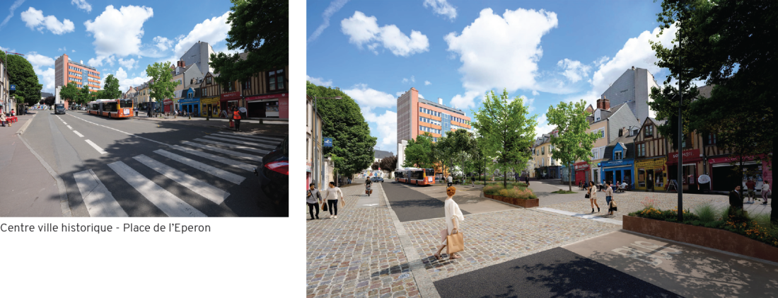 Dans ce cadre, des places urbaines majeures sont aussi requalifiées telles Pâtis Saint-Lazare ou la place Georges Washington.