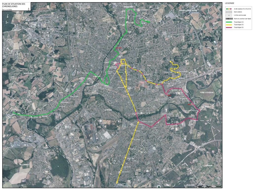 Le projet de réalisation de 3 chronolignes sur Le Mans Métropole a comme objectif d’améliorer, par leurs aménagements, trois lignes de bus enxistantes les plus importantes du réseau actuel , pour se rapprocher d’un service de BHNS.